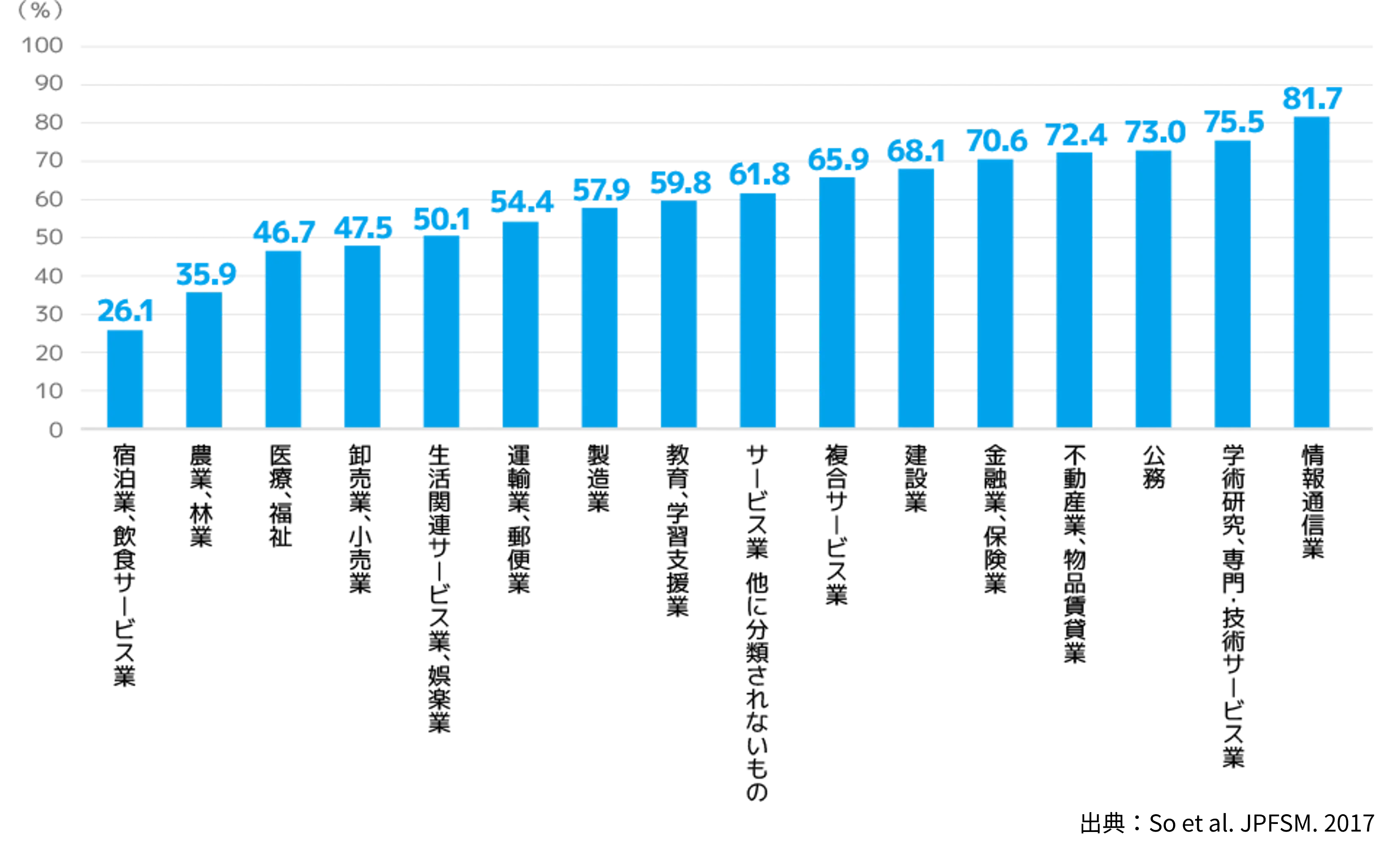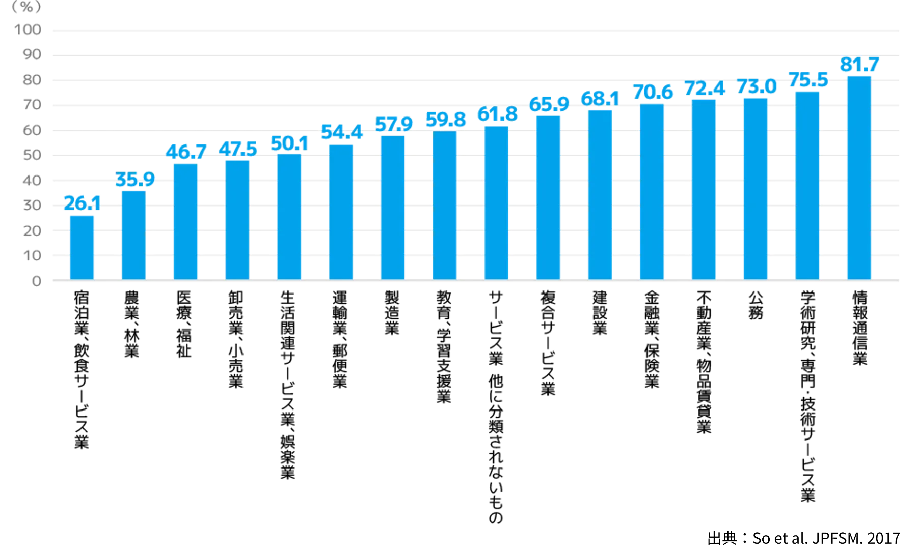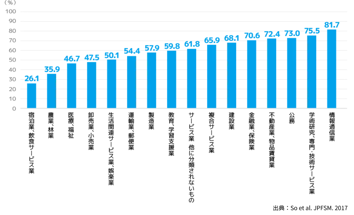 WLAQで調査した勤務時間に占める座位時間の割合(職種別)